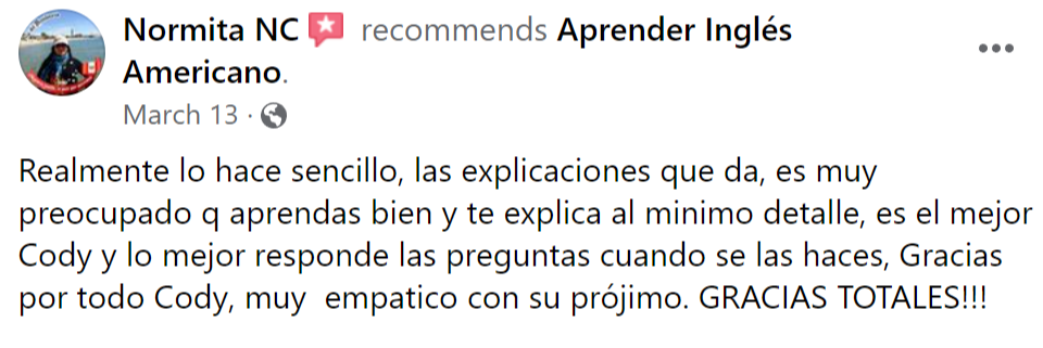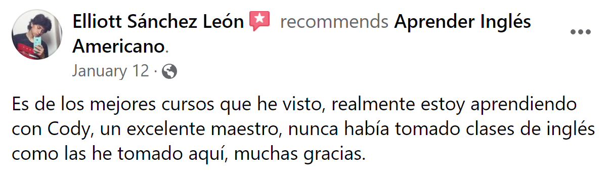 Profe Cody tiene una Maestría en Enseñanza de Inglés y ha enseñado en los Estados Unidos, Argentina y Vietnam por más de 7 años. Descubrió este nuevo método, que el 99% de los profesores NO CONOCEN, en las aulas de la vida real de todo el mundo, ¡ayudando a los estudiantes a aprender inglés más rápido!